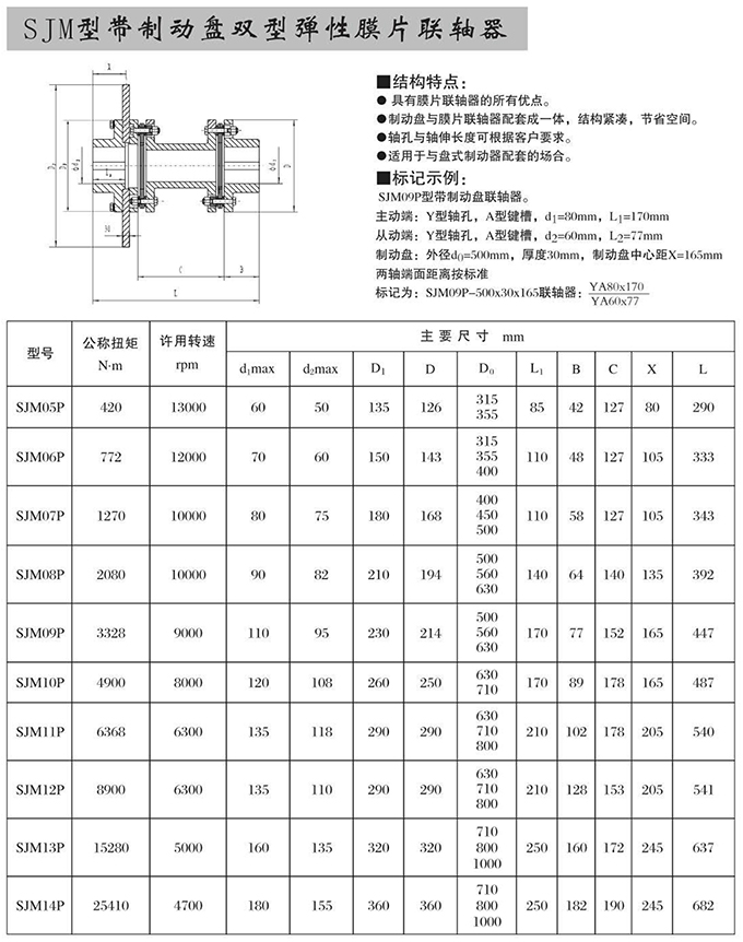瑞安市寶德隆機械配件有限公司提供SJM型帶制動盤雙型彈性膜片聯(lián)軸器具有拆裝方便,快速安裝等特點,廣泛用于連接/固定輪轂孔和零件的軸,例如齒輪,錐齒輪,鏈輪,葉輪,凸輪,皮帶輪和飛輪等軸的聯(lián)結(jié)固定,咨詢電話:18906872378