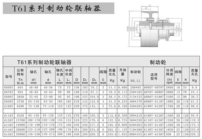 瑞安市寶德隆機(jī)械配件有限公司提供T61系列制動輪聯(lián)軸器具有拆裝方便,快速安裝等特點(diǎn),廣泛用于連接/固定輪轂孔和零件的軸,例如齒輪,錐齒輪,鏈輪,葉輪,凸輪,皮帶輪和飛輪等軸的聯(lián)結(jié)固定,咨詢電話:18906872378